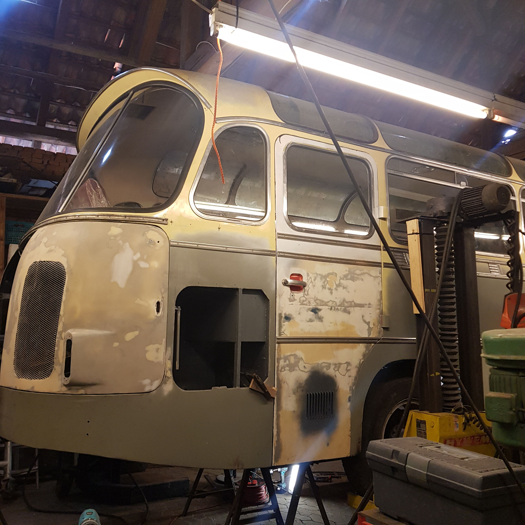 "Ein Oldtimer-Bus mit Dieselmotor (Setra S9, Baujahr 1964) soll auf