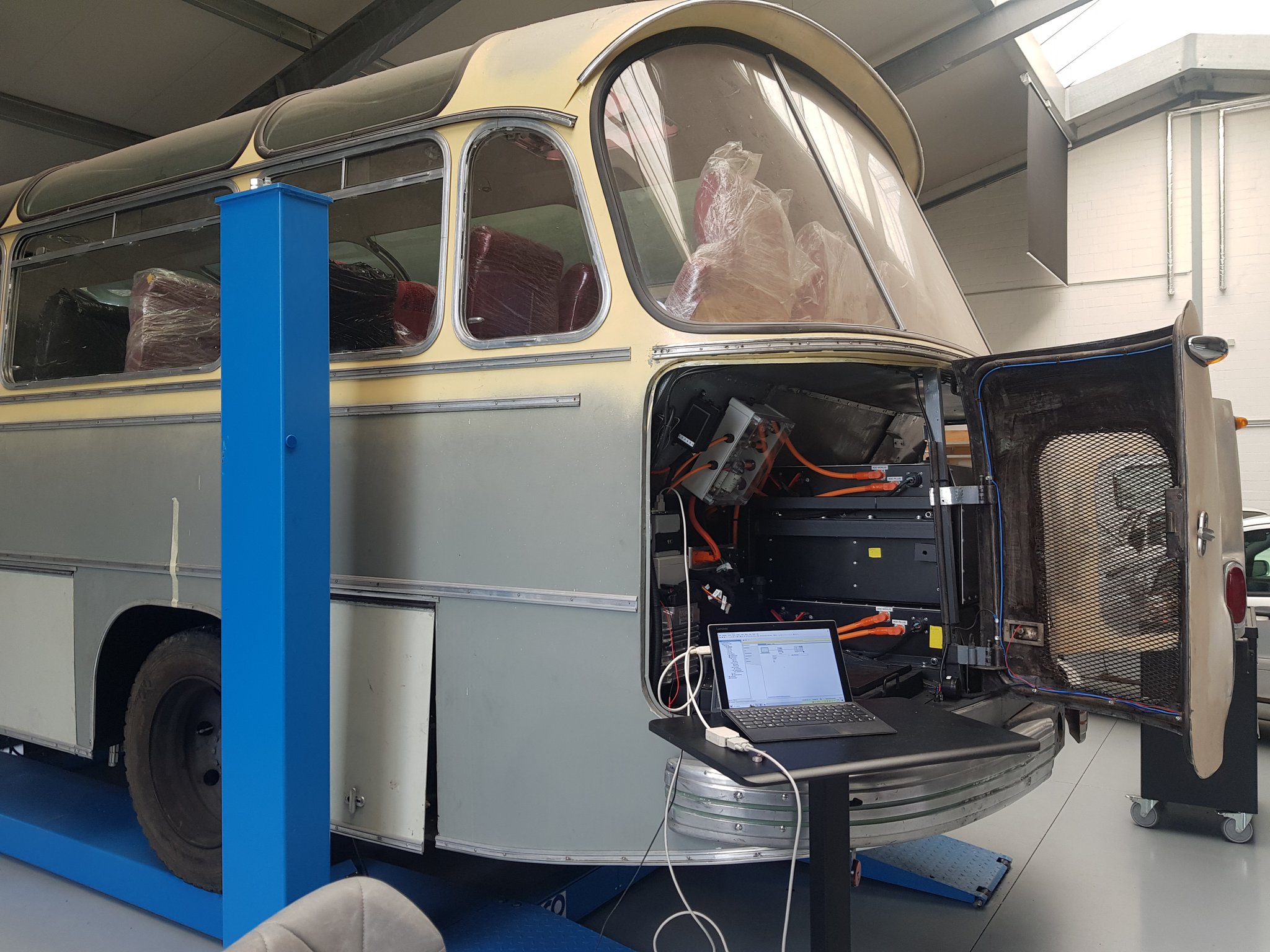 auf dem Dach des Busses eine PV-Anlage installiert. Die Umrüstung eines inzwischen 57 Jahre alten Busses auf umweltfreundlichen Elektroantrieb soll nicht nur die Attraktivität der Marke
